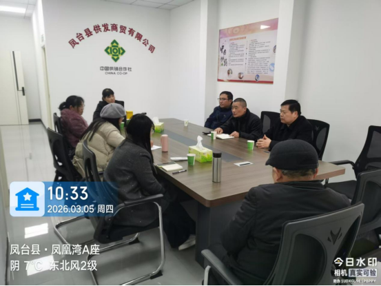 3月5日上午,县税务局城关分局局长程鹏一行深入凤台县供销社社属企业,开展税务相关工作专项指导,助力社属企业规范经营、提质增效。县供销社党组书记、理事会主任岳粹陡陪同指导,县供发商贸公司、县供兴农资公司、县再生资源公司主要负责人及财务人员参加相关会议。