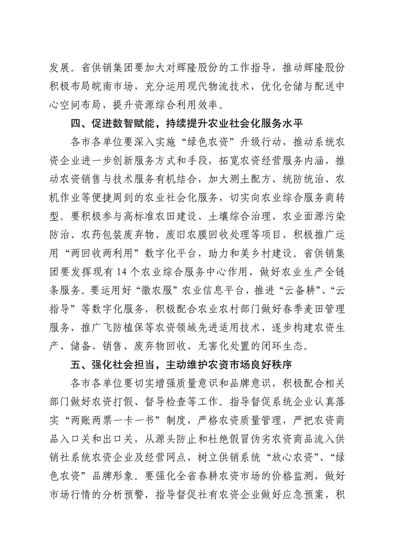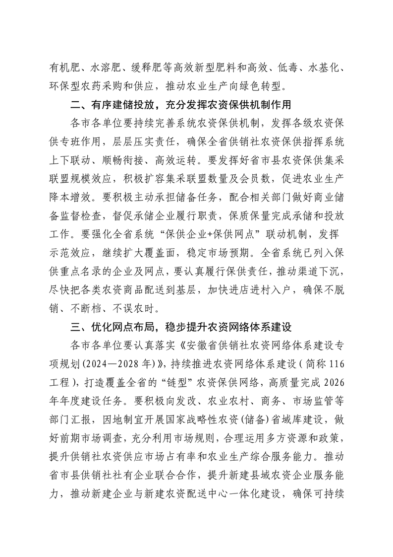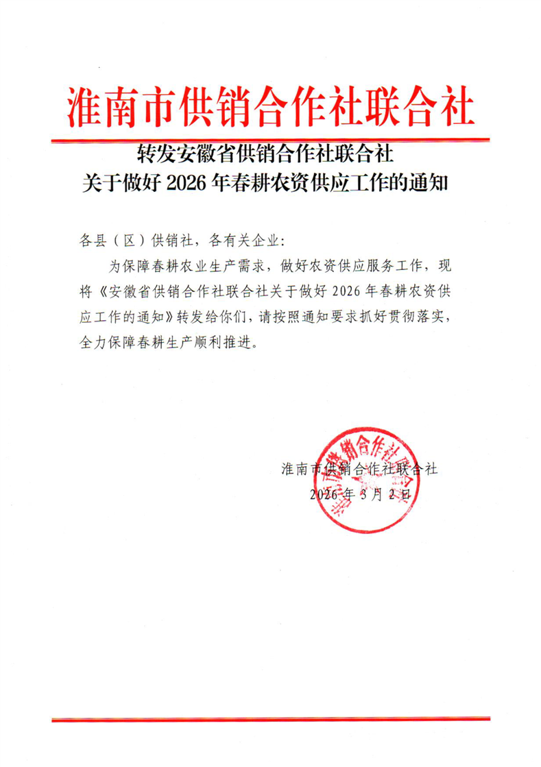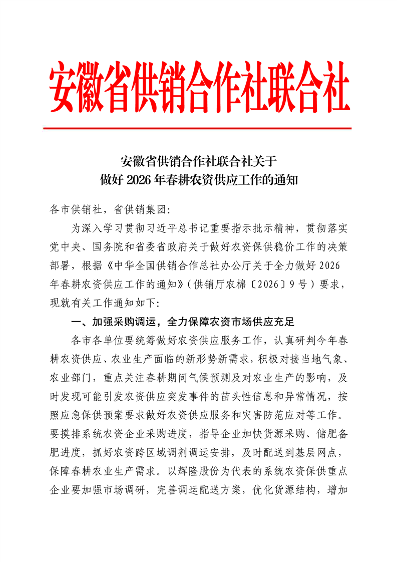 转发安徽省供销合作社联合社关于做好2026年春耕农资供应工作的通知